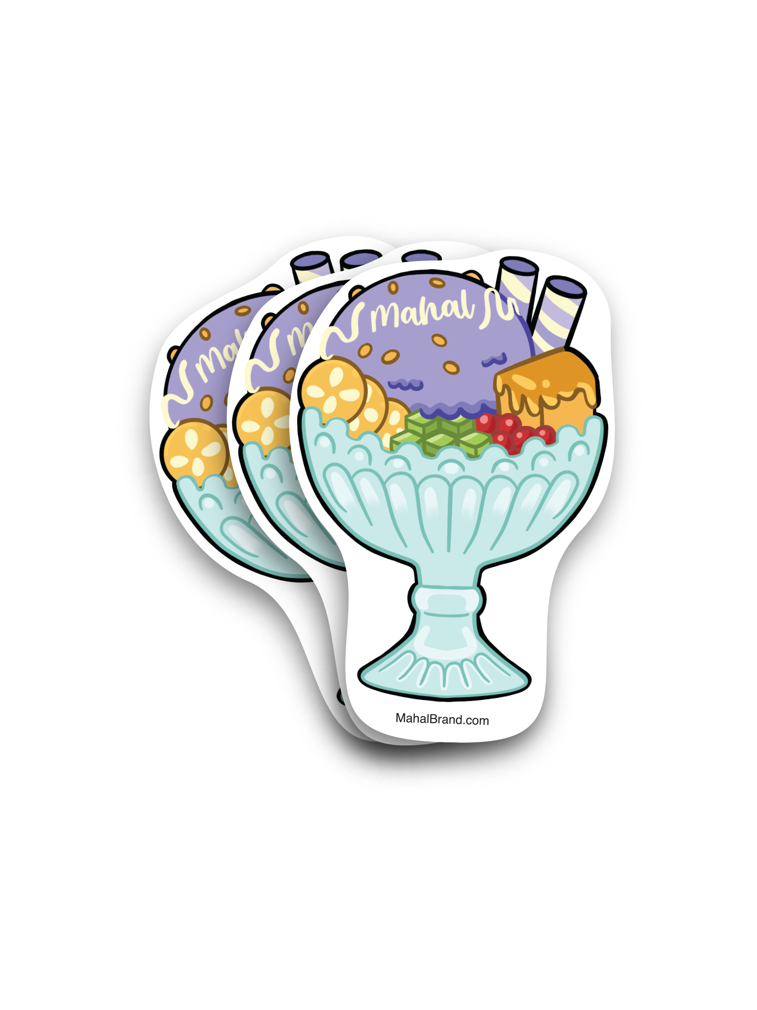 Halo-halo wasn’t just a treat—it was tradition in a tall cup. The mix of sweet beans, leche flan, and that one perfect scoop of ube that somehow tasted like summer and your childhood all at once. This sticker is for the real ones who know: spoon deep, stir it up, and don’t skip the flan.