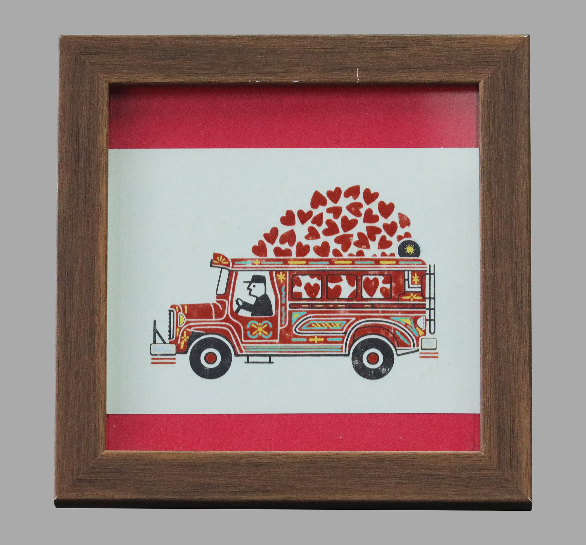 A whimsical celebration of the Philippines’ most iconic symbol of community and connection. This vintage-inspired illustration features a colorfully decorated jeepney crowned with an abundance of red hearts spilling from its roof—a perfect metaphor for how Filipino culture carries love wherever it goes. The traditional ornamental patterns adorning the vehicle honor the craftsmanship and joy inherent in Filipino transportation culture, while the heart motif bridges heritage with the universal language of love.